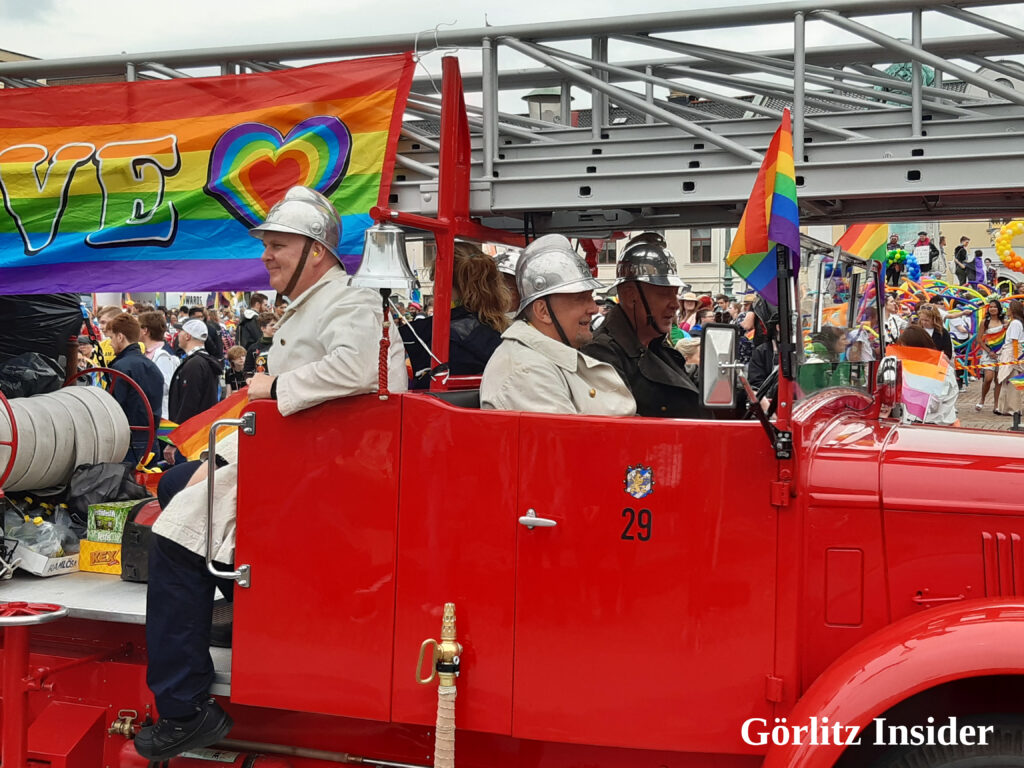 Das fand ich ganz besonders schön, denn nicht nur, dass sie eines ihrer ältesten Fahrzeuge geschickt hatten, sondern auch ihre dienstältestens Schwulen mitfahren konnten.
