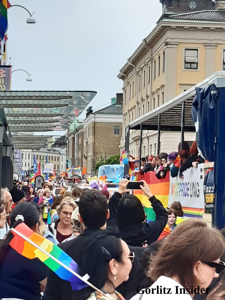 So nennt sich der CSD in Göteborg und zieht Menschen aus ganz West-Schweden. Die Provinz Västa Gotland hat 1.616.000 Einwohner und wäre demnach vergleichbar mit Sachsen. Sachsen hat 4.042.422 Einwohner. Zum Westpride kommen 125.000 Teilnehmer. Zum sächsischen CSD etwa 10.000 Teilnehmer. Hier sieht man bereits einen gewaltigen Unterschied, wie sehr viel tiefer der Westpride in der schwedischen Bevölkerung verankert ist, als unser sächsischer CSD. Der Westpride ist nämlich ähnlich einem Stadtumzug, dessen Strecke tausende Schaulustige säumen.