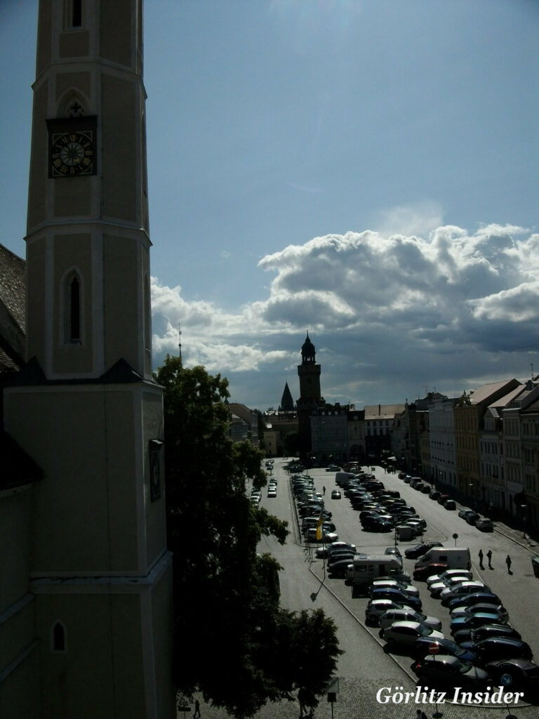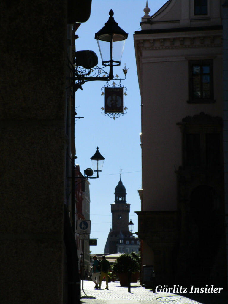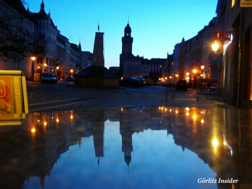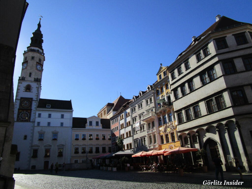 Ein Tag mit Postkartenwetter in Görlitz geht zu Ende. Blick vom Untermarkt zum Obermarkt.