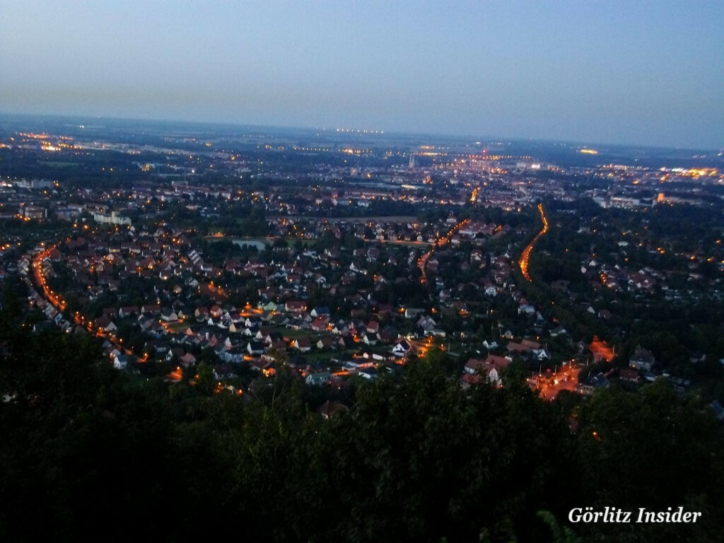 Görlitz in der Dämmerung von der Landeskrone aus.