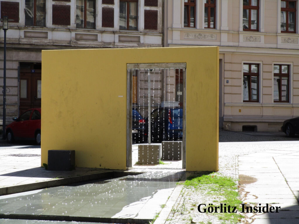 Einsam plätschert das Wasserspiel auf dem Leipziger Platz vor sich hin. 3 Bäume mehr, 3 Bänke mehr, 5 Papierkörbe mehr, freies W-Lan und im ehemaligen Lottoladen ein Coffee to go Ausschank, schon könnte fröhliches Kindergekicher den Platz erhellen, während die Café-Latte-Muttis ihren Schnack halten. Vielleicht hat der Bürgerrat Görlitz Innenstadt West eine Idee…
