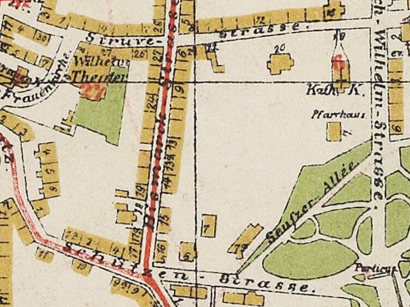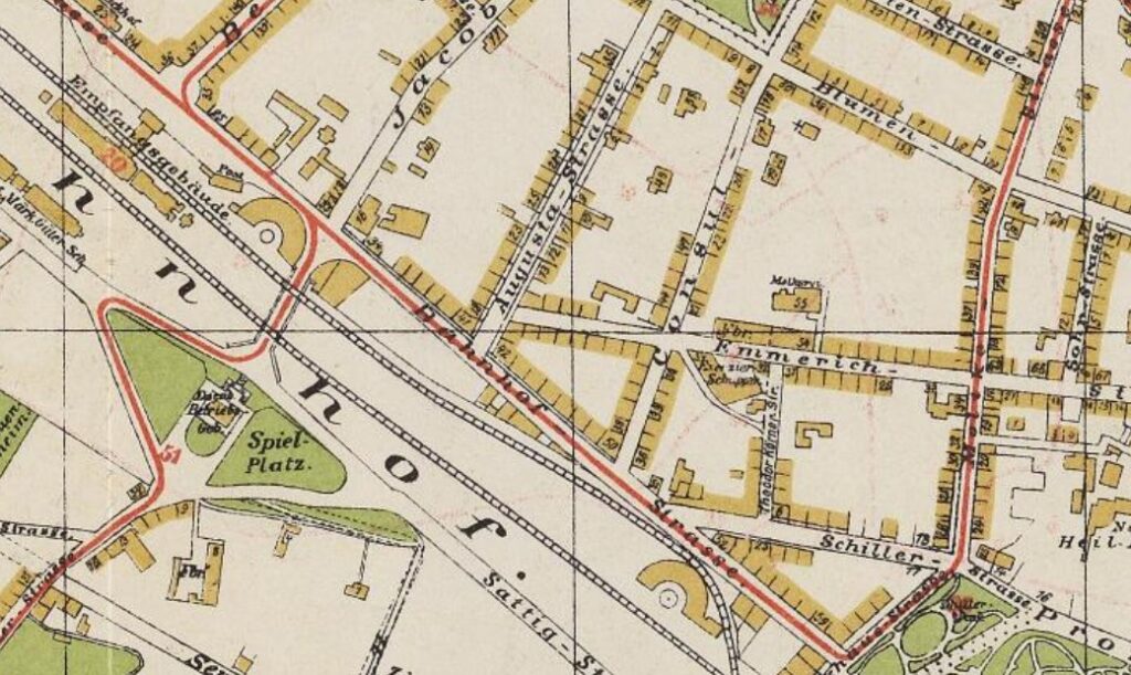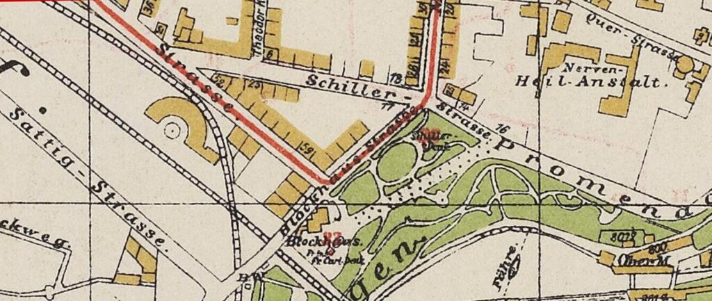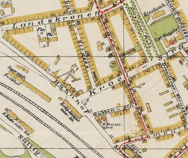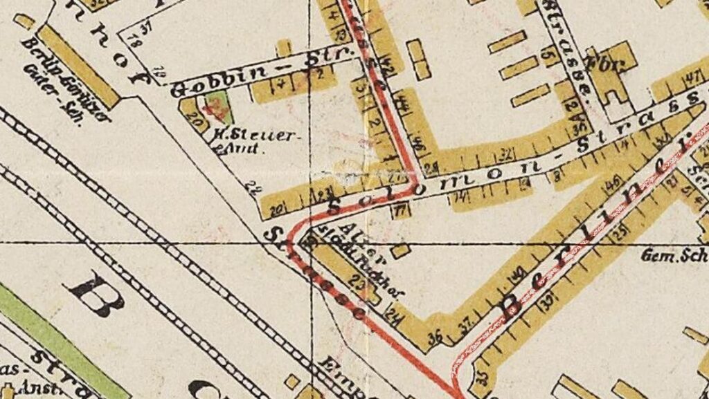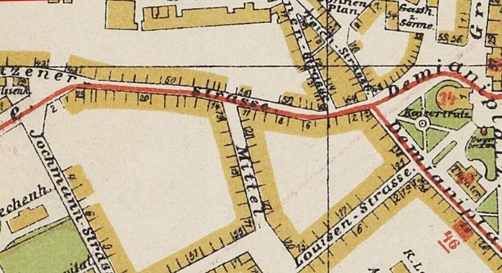 Auf in die heutige Innenstadt-West. Es hört sich unglaublich an, aber sie bog tatsächlich von der Bahnhofstraße in die Salomonstraße und dann gleich wieder in die Leipziger Straße.