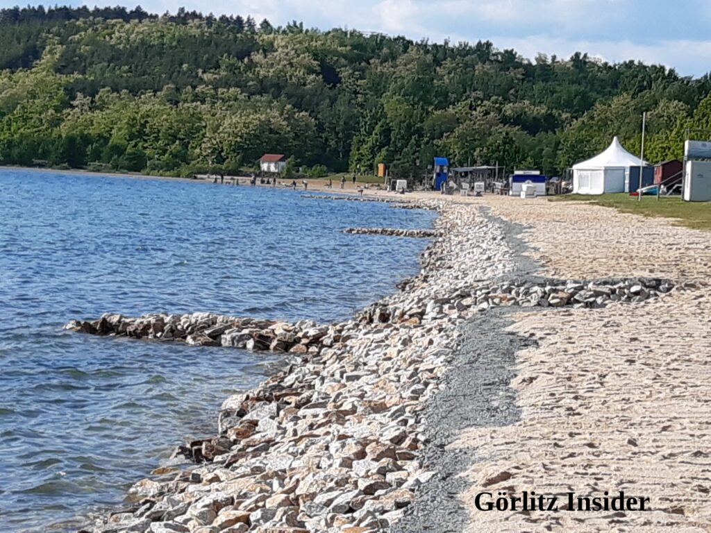 Da gibt es jetzt solche Wellenbrecher(chen). Seit Jahren kämpft der See mit dem Verlust des Strandes nach starkem Wellengang. Verschiedenste Maßnahmen wurden bereits ergriffen – erfolglos. Hoffen wir, das die Wellenbrecher(chen) etwas bewirken.