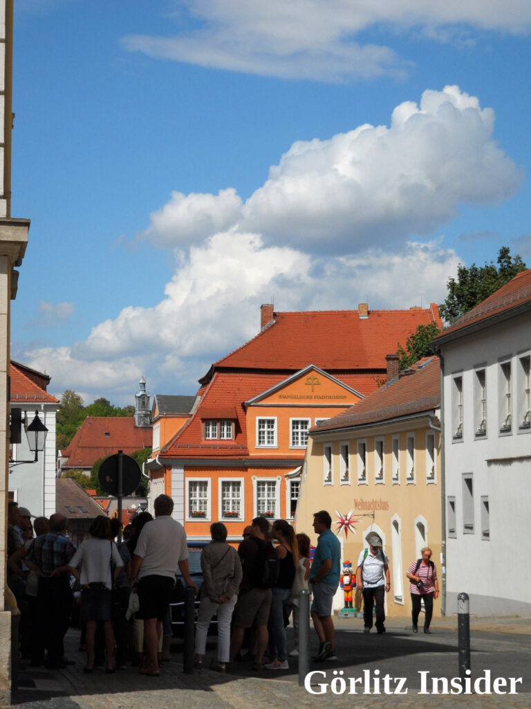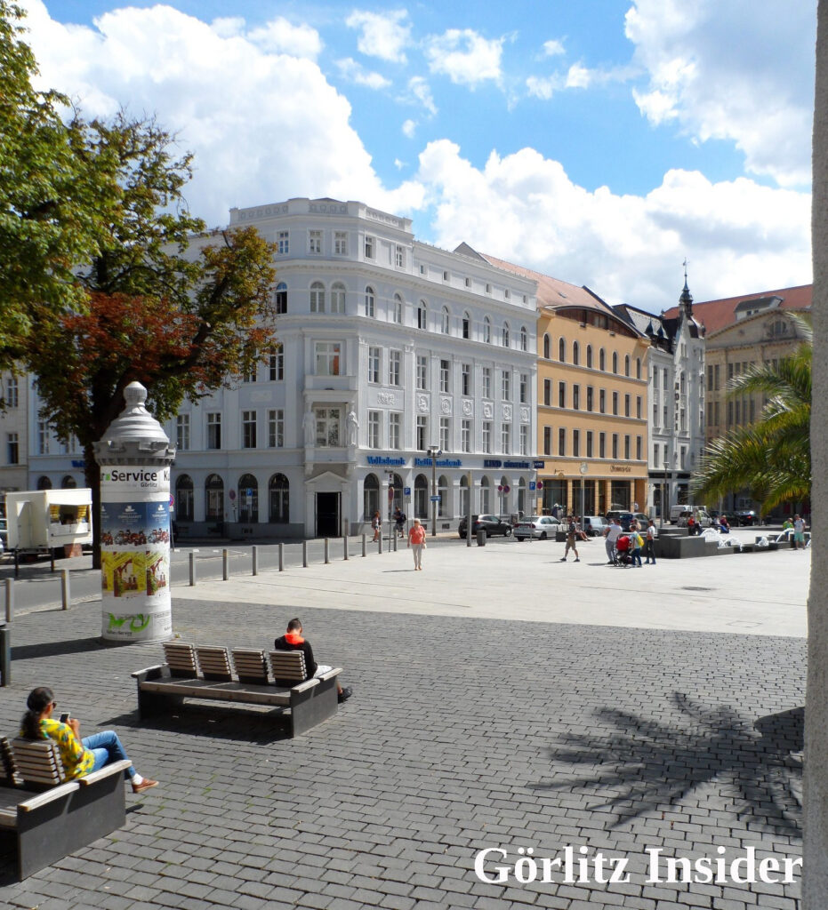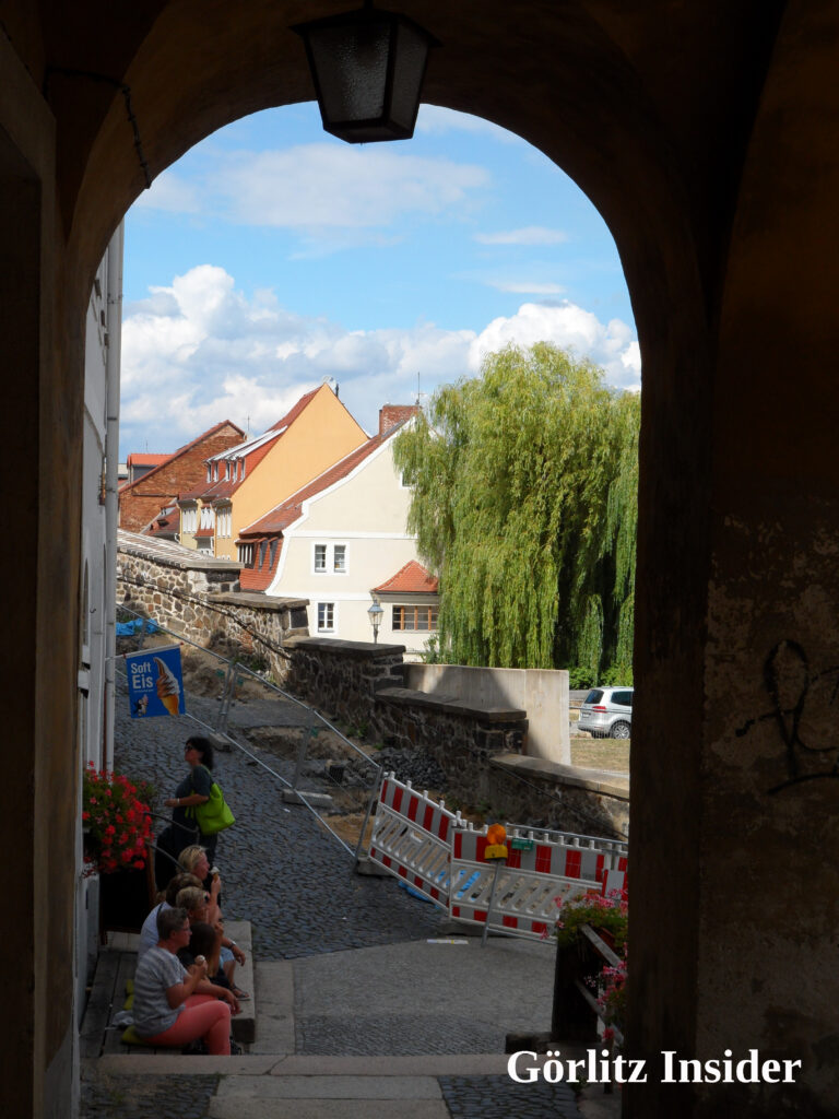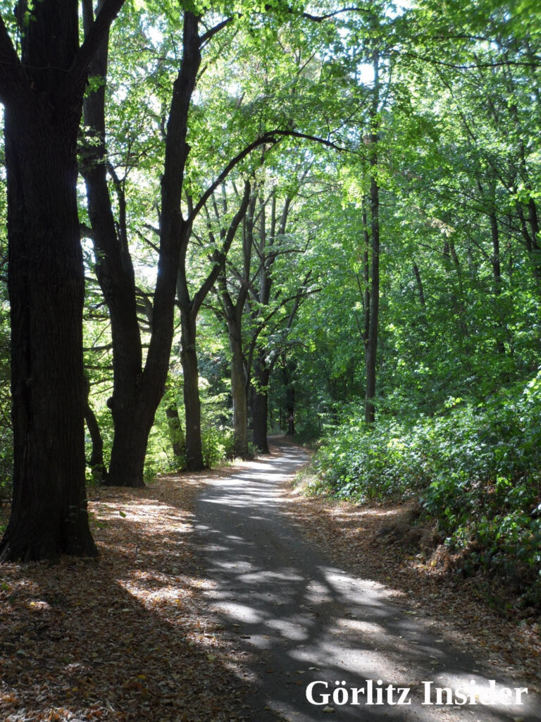 Blick vom Dicken Turm den Elli hinab. Geplant war ja, den Elli vom Marienplatz bis zur Neiße zu ziehen als grünes Band durch die Stadt. Das klappte nicht, weil untere Kante Elli das Grundstück schon vergeben war und der Besitzer es auch nicht mehr raus gab. Das „Grüne Band“ hat ganz schön gelitten. Nicht nur wegen der aktuellen Trockenheit. Die doppelte Baumreihe hat doch sehr viele Lücken. Hier ein paar historische Fotos ab 1897:
