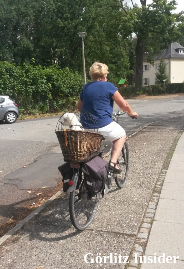 Wir haben mehrere Menschen in Görlitz, die nehmen ihre kleinen Hunde ein Stück mit dem Fahrrad mit.