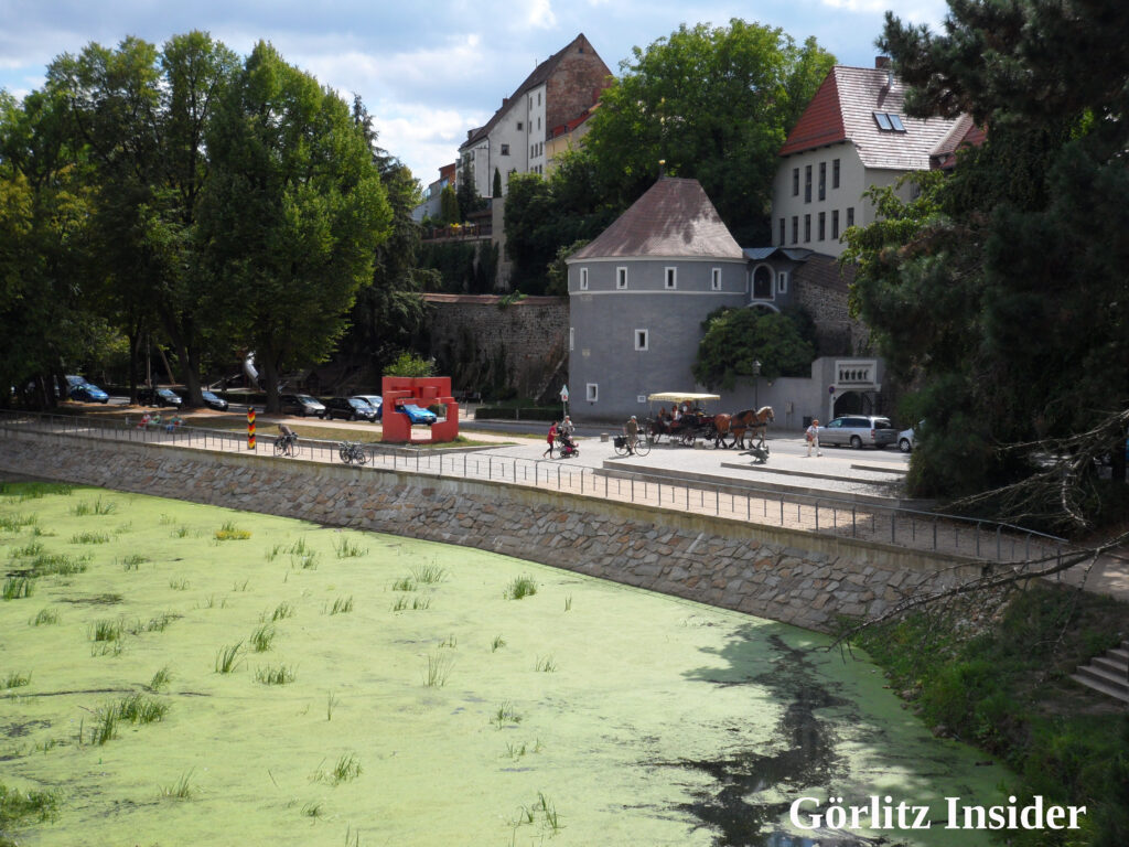 Die Grütze und Algensoße in der Neiße in diesem heißen trockenen Jahr.