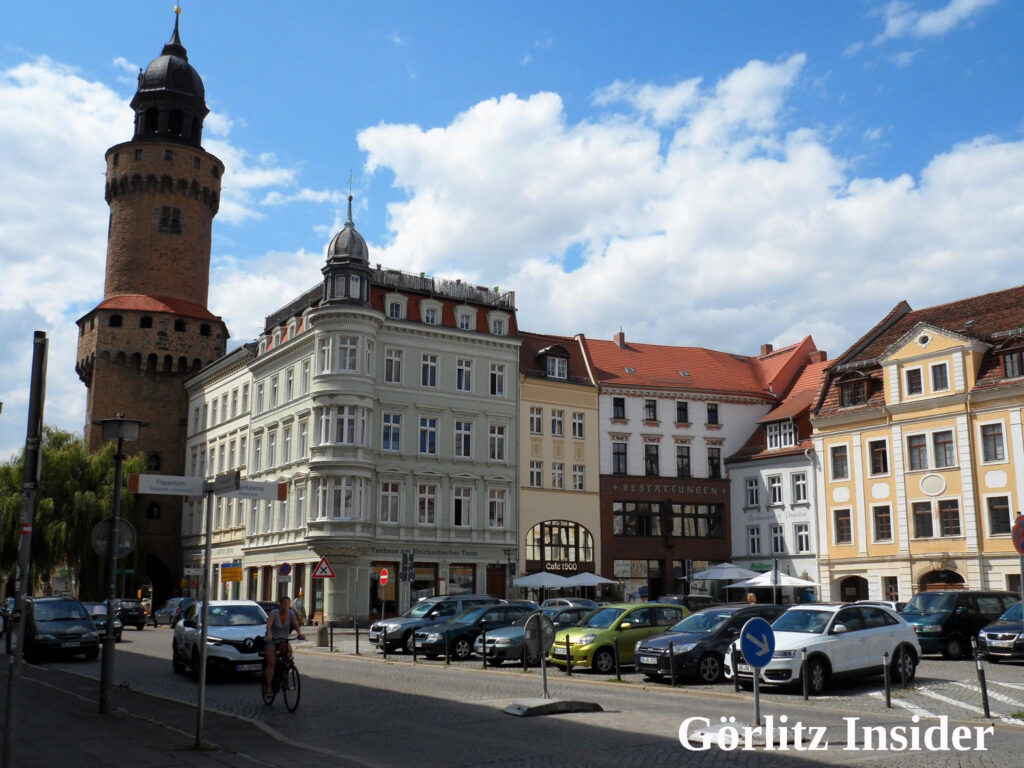 Das Westende vom Obermarkt mit dem Reichenbacher Turm.