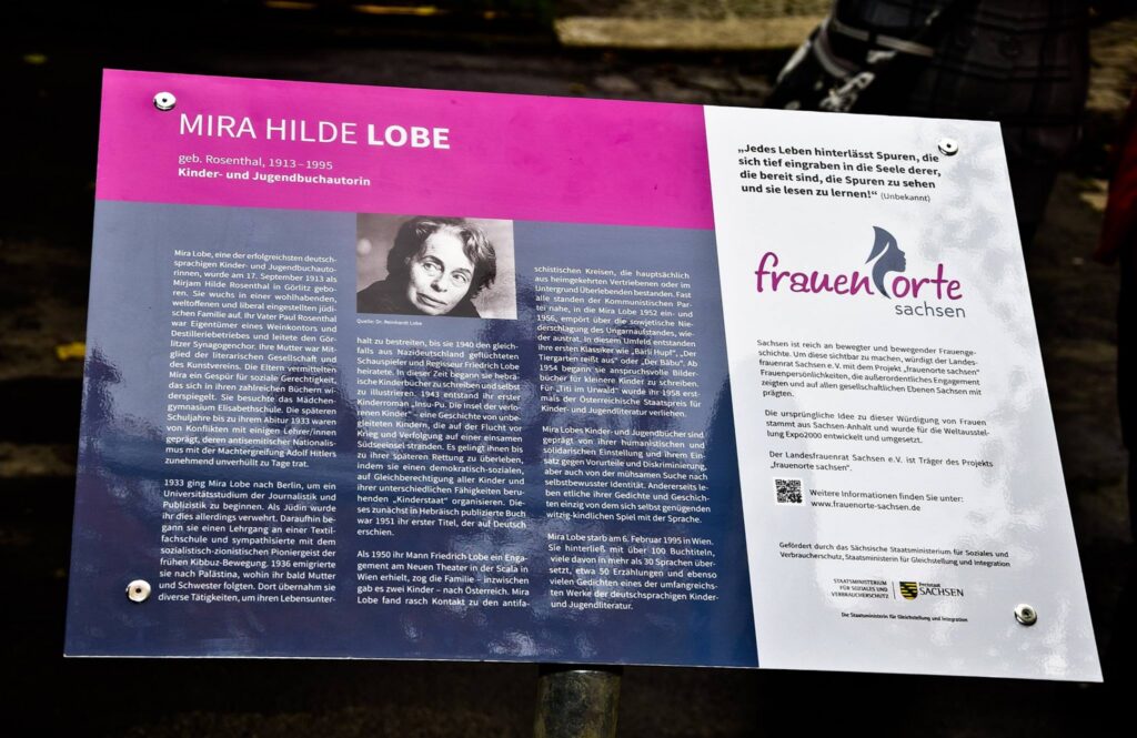 Die berühmteste Kinderbuchautorin Österreichs Mira Lobe war Görlitzerin ( 17. September 1913 in Görlitz; † 6. Februar 1995 in Wien). Sie wohnte Struvestraße, wo sich heute eine Gedenktafel befindet. Zur Schule ging sie am Wilhelmsplatz (höhere Mädchenschule). Schon als Schülerin machte sich ihr Talent zu schreiben bemerkbar und zwar derart gut, dass man ihr absprach, ihre Aufsätze kämen von ihr selbst. So musste sie unter Aufsicht im Lehrerzimmer Aufsätze wiederholen. Und selbst danach erkannte man nicht an, das sie ein unglaubliches Talent besaß. Man unterstellte ihr, geschummelt zu haben.
