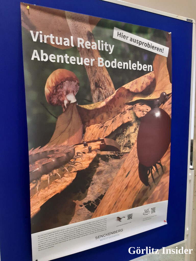 In den Ferien wird das „Abenteuer Bodenleben“ angeboten. Am Montag, Mittwoch und Freitag, jeweils von 11 – 15 Uhr. Ungefähr 15 Minuten ist man mit der Brille unterwegs. Immer nur einer nach dem anderen. Dafür gibt es an der Kasse eine Liste, in der man seinen virtuellen Ausflug reservieren kann. Das Angebot ist im Eintrittspreis enthalten.