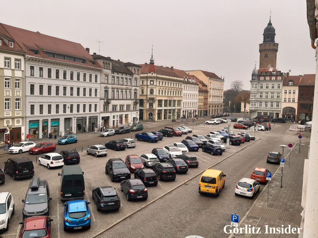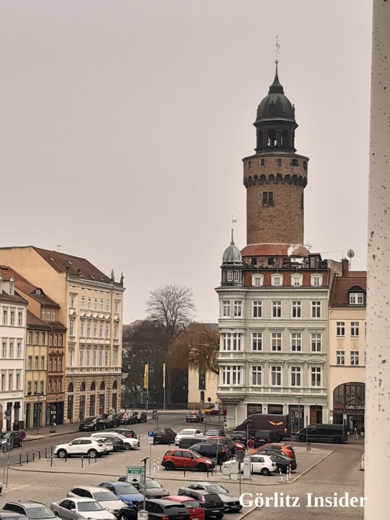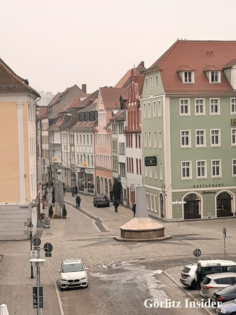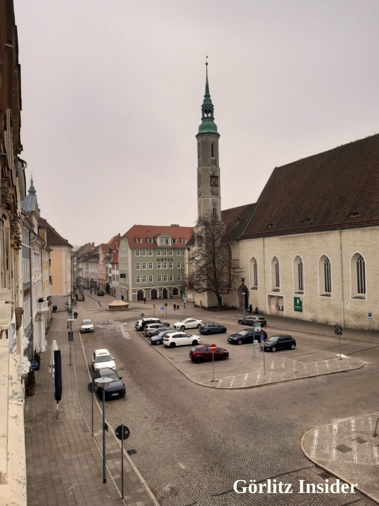 Wir waren dieses Mal in einer Ferienwohnung am Obermarkt. Ihr ahnt es: Wenn die Insiderin schon mal zu so einer Aussicht kommt, dann bringt sie auch Fotos mit. Hier also der Blick aus dieser Perspektive auf Brüderstraße, Dreifaltigkeitskirche, Klosterplatz, Reichenbacher Turm und den schönsten Parkplatz der Stadt.